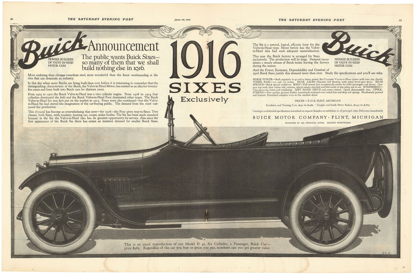 Buick 1916 Sixes Exclusively.
