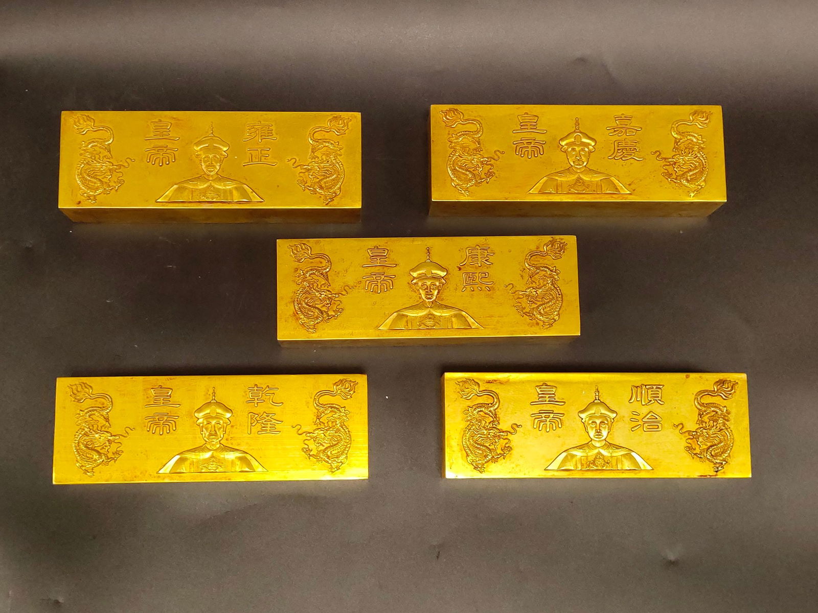 A Set of Exquisite Bronze Gilt Human Pattern Gold BarFeb 26, 2026Classic Style Bronze Gilt 5 Bars Emperors CoinsFeb 22, 2026Rare and exquisite Qing Dynasty gold bricks and bars.19 hrs LeftFive Copper Gold Ingot Bars Vintage Replica SetFeb 22, 2026Vintage Copper Gold Ingot Set 5 Bars Qing StyleFeb 22, 2026A Exquisite Bronze Gilt Gold BarFeb 26, 2026Solid gilded gold bar, made during the Shunzhi reign of the Qing Dynasty, weighing one ten taels,19 hrs LeftA Exquisite Bronze Gilt Gold BarFeb 26, 2026Antique Style Chinese Gilt Ingot Engraved ShipsFeb 22, 2026Solid gilded gold bar, made during the Qianlong reign of the Qing Dynasty, weighing one ten taels,19 hrs LeftSolid gilded gold bar weighing ten taels, made in the sixth year of Emperor Xuan of the Western Han19 hrs LeftReplica Bar Chinese Gold-Plated Ingot Qing DynastyFeb 22, 2026A set of Qing Dynasty copper gilt Five Emperors coinsMar 07, 2026Solid gilded gold bar, made during the Qianlong reign and bestowed by the emperor. The patina is8 hrs LeftA Exquisite Bronze Gilt Gold BarFeb 26, 2026Antique Style Bronze Copper Gilt Statue IngotFeb 22, 2026