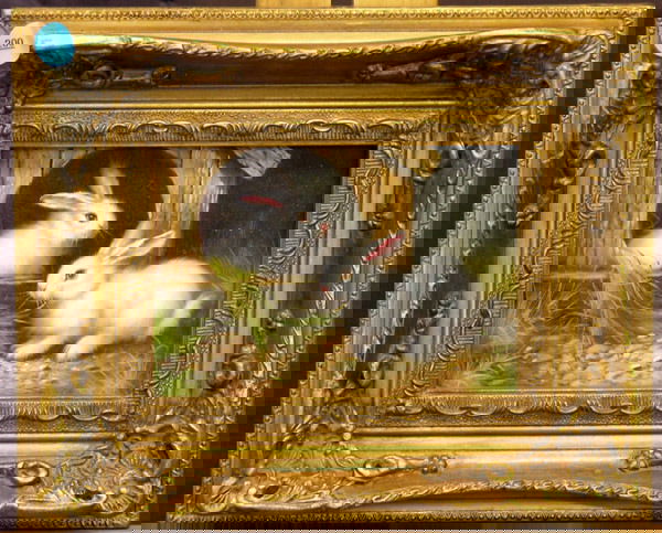 Bunnies on o/board, in gilt frame