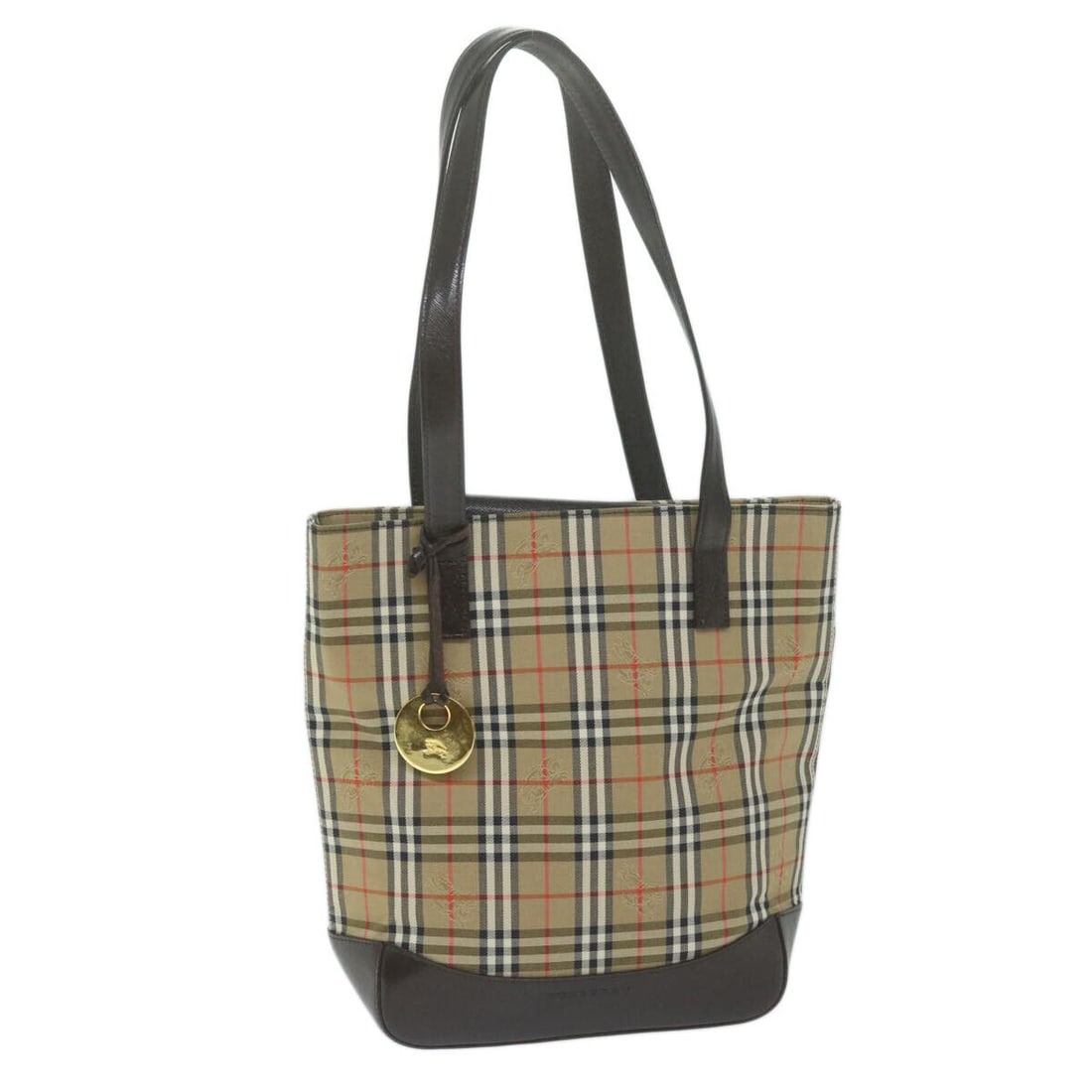 Burberry Beige Canvas Tote Bag with Classic Nova Check Pattern