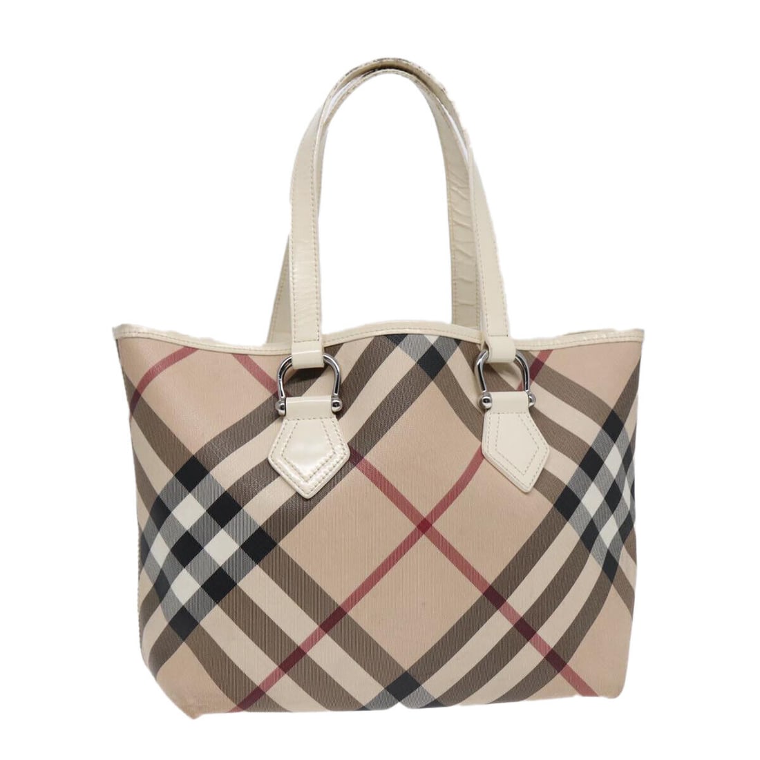 Burberry Nova Check Tote Bag Beige Silver PVC Leather