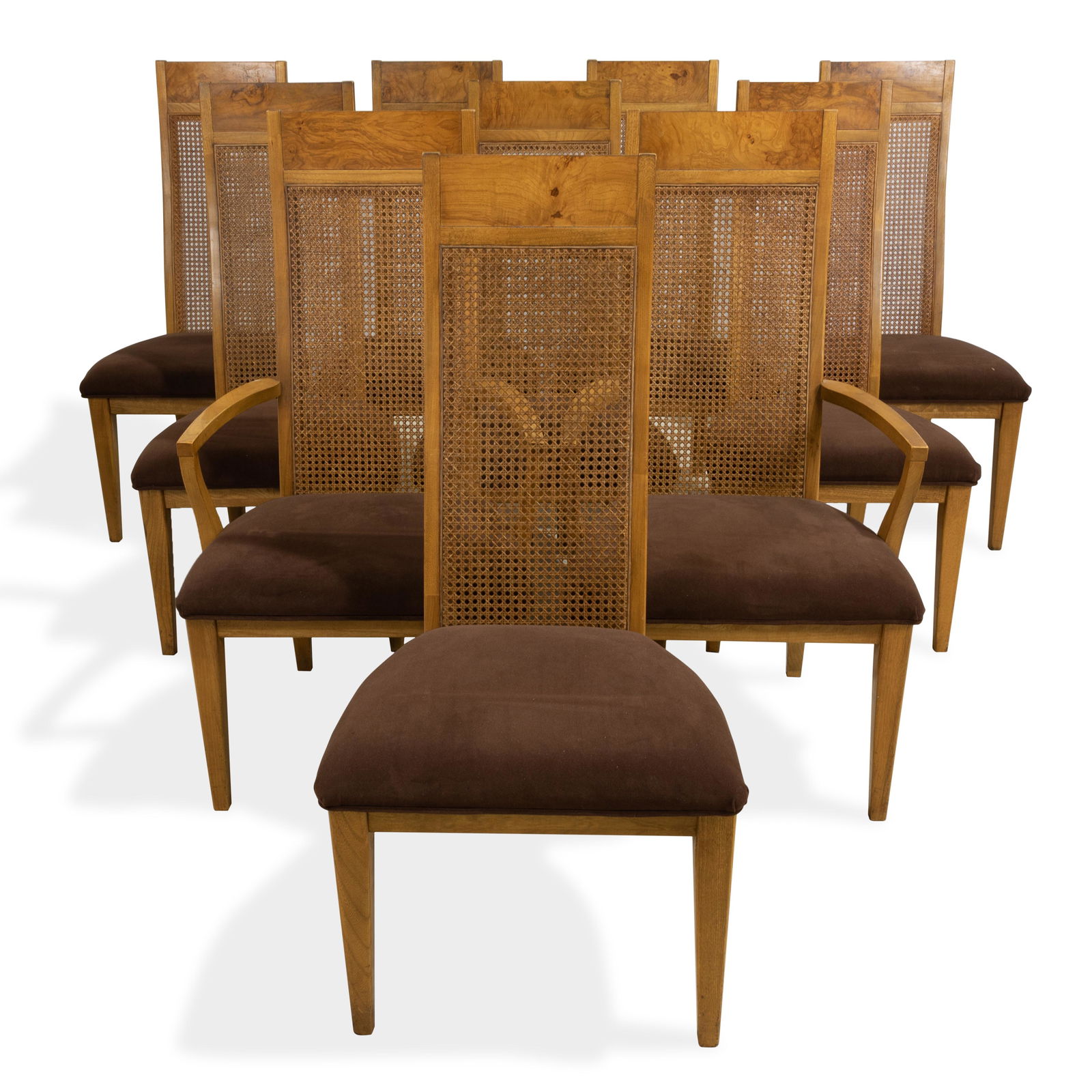 Burl and Cane Dining Chairs - 10