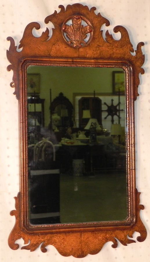 Burl walnut Queen Anne style mirror.