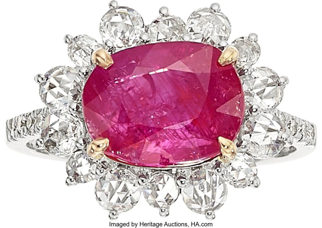Burma Ruby, Diamond, White Gold Ring Stones: Ov