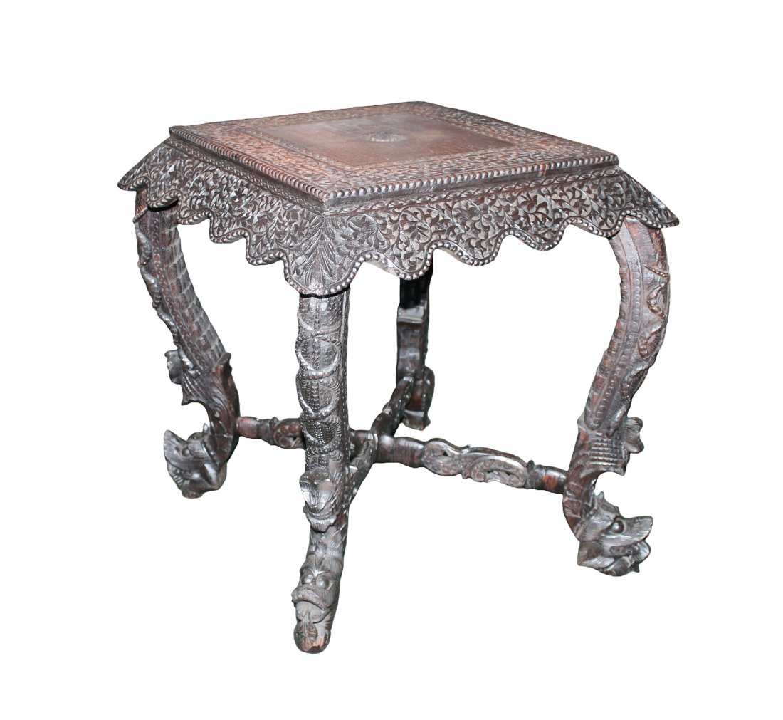Burmese relief and pierce carved side table