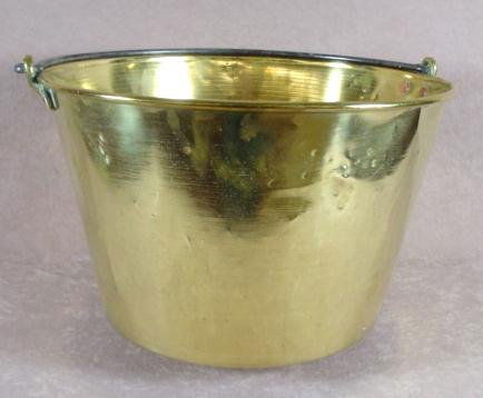 SoldBRASS PAILLARGE BRASS PAIL, WITH HANDLE. 13" DIAM, x 12" H. FROM THE COLLECTION OF THE MISSION INN RIVERSIDE CA.See Sold Price
