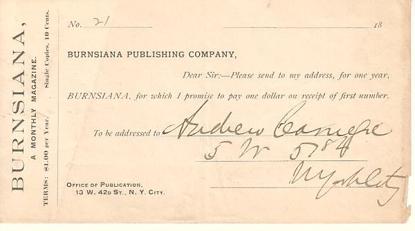 (BUSINESS.) CARNEGIE, ANDREW. Printed Document