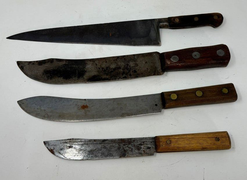 Lot Of 8 Sporting KnivesLOT 4 KNIVES WITH DECORATIVE HANDLESMar 05, 2026Imperial Fixed Blade Knife Lot w/ Moose Handles and Leather SheathMar 02, 2026LOT OF 9 SURVIVAL / FIGHTING KNIVESFeb 21, 2026LOT OF 4: US WWI BOLO KNIVES.Mar 03, 2026LOT OF 4: KEEN KUTTER POCKET KNIVES.Feb 25, 2026LOT OF VINTAGE STAG HANDLE FIXED BLADE KNIVESFeb 21, 2026LOT OF 2 ST. LOUIS KNIFE CO HUNTING KNIVES7 days LeftLOT OF 5: ROBESON SHUREDGE CUTLERY CO. POCKET KNIVES.Feb 25, 2026Vintage Ontario Old Hickory and Regent Carbon Steel Butcher Knives Lot of 3`Mar 16, 2026LOT OF 3: PRESS BUTTON KNIFE CO. AND PRESTO STERLINE DOUBLE BLADE SWITCHBLADES.Feb 25, 2026Lot Of 5 Military Knives And Bayonets With Scabbard And SheathsLot Of 6 Various Bayonets With Scabbards And Sheaths And One Curved Blade KnifeLOT OF 3: FIXED BLADE HUNTING KNIVES AND SHEATHS. BUCK TWIN SET, WESTERN KNIFE AX, BUCK 107 SCOUTFeb 25, 2026Two Custom Handmade Damascus Steel Fixed Blade Knives with Leather SheathsFeb 21, 2026RAMBO & INDIANA JONES KNIVES + MACHETEFeb 21, 2026