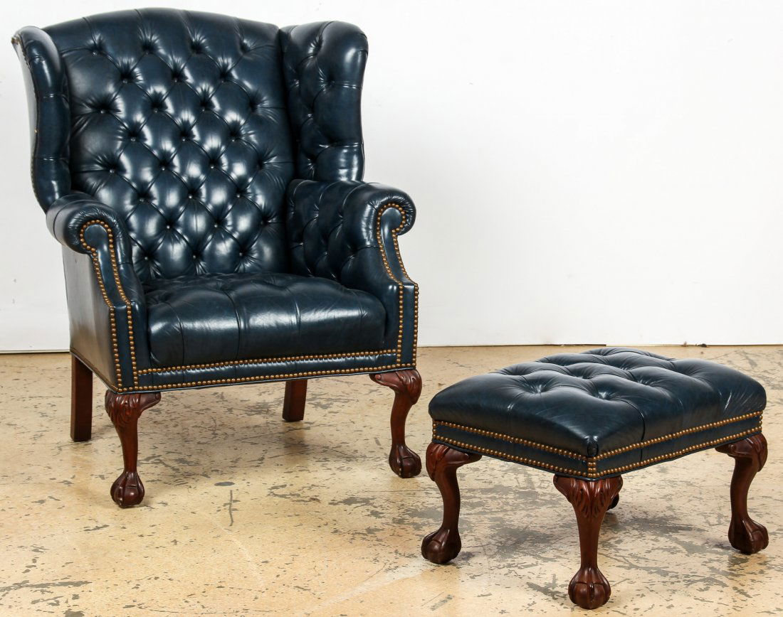 Button Tufted Wing Chair And Ottoman
