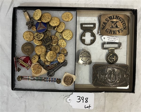 Vintage Jewelry Group LotMar 05, 2026Vintage Jewelry Group LotMar 05, 2026Vintage Jewelry Group LotMar 05, 2026LOT OF TOKENS AND PINS3 days LeftBag Lot (pins-ribbons-belt buckle4 days LeftBag Lot (assortment of belt buckles)4 days LeftLOT OF MILITARY BADGES AND INSIGNIAS3 days LeftANTIQUE MIXED JEWELLERY LOT BROOCHES, RINGS ETCLARGE LOT OF MILITARY BUTTONS3 days LeftLot of Early Medals, Pins, & RibbonsMar 05, 2026Lot of Early Medals, Pins, & RibbonsMar 05, 2026Lot of Assorted Men's JewelryMar 05, 2026Lot of Buttons, Political Pins, Keychains, and MedallionsMar 05, 2026US Military Insignia Pins Ribbons Patches Dog Tags Buckles Lot6 days LeftNamed WWII - Cold War US Army Militaria Collection: Medals, Patches, & Insignia Lot1 day LeftLOT OF ANTIQUE BUTTONSFeb 26, 2026