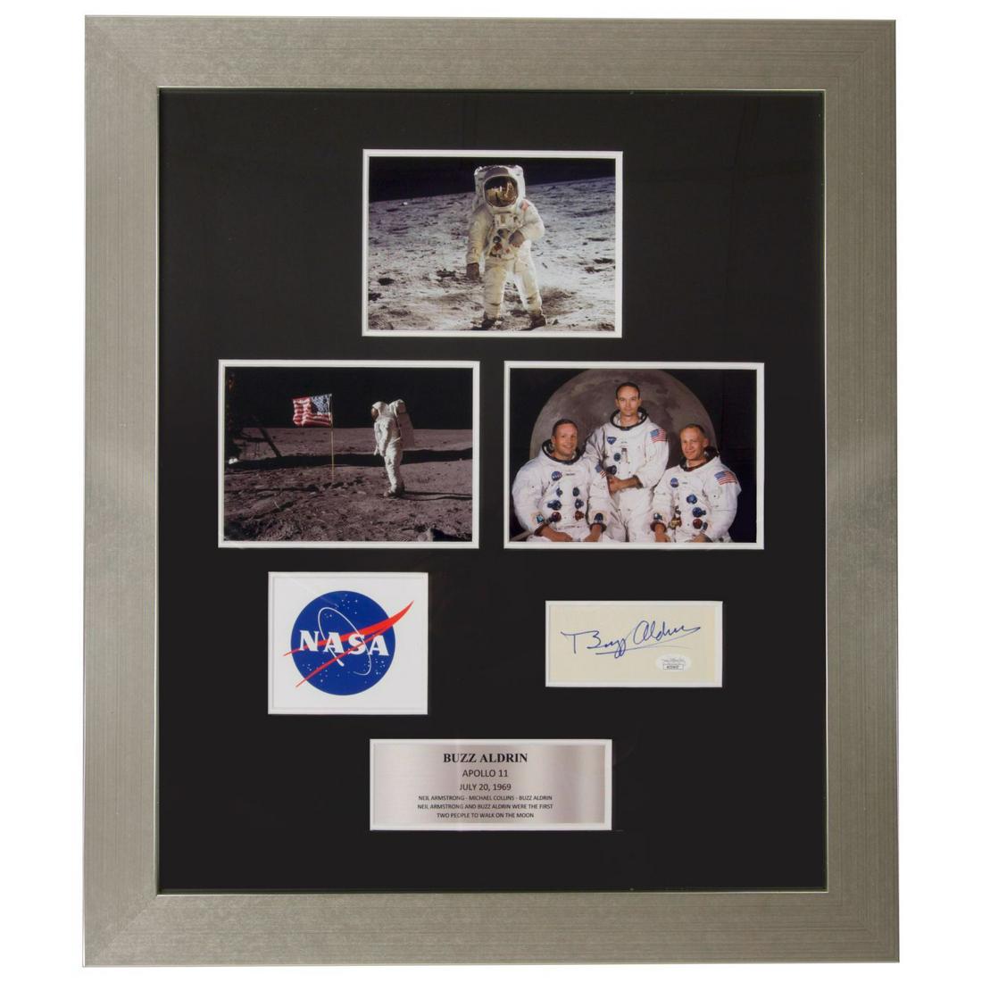 Buzz Aldrin Signed Piece Framed w/Pictures (JSA)