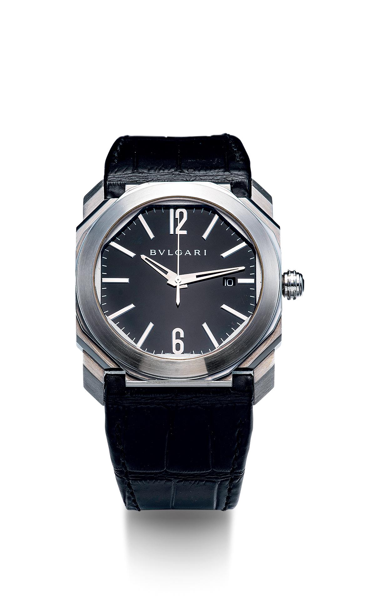 BVLGARI A STAINLESS STEEL OCTAGONAL AUTOMATIC WATCH