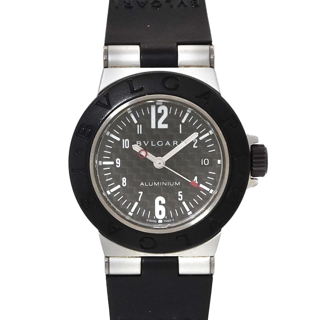 BVLGARI ALUMINUM DATE QUARTZ BLACK CARBON DIAL WATCH