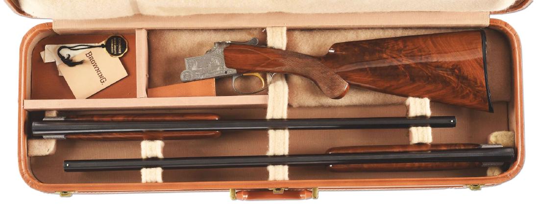 Browning O/U Superposed Exhibition Grade three (3) barrel Set, in 20/28/410 gauges, Shotgun, SN6 days LeftBelgium Browning O/U Pigeon Grade three (3) barrel Skeet Set, in 20/28/410 gauges, Shotgun, SN6 days LeftBelgium Browning O/U Presentation Grade P2P, 20 ga., Shotgun, mfg. 1979, SN P33RN1140, gold inlaid6 days LeftColt Sauer, Grade IV Model, B/A Rifle, 7 MM Rem Mag caliber, SN CR22688. Like new unfired Colt Rifle6 days LeftMaker Rizzini, (William Larkin Moore, Importer), Factory vent ribbed barrels, Three (3) Barrel Set,6 days LeftBrowning, O/U Citori Grade 3, 20 ga., Shotgun, SN 31057MR131, mfg. 2007, 28" barrels, length of pull6 days LeftA FINE AND RARE CASED .451 WHITWORTH PERCUSSION DOUBLE SPORTING RIFLE,Apr 07, 2026Belgium Browning, Superposed, Pigeon Grade, 12 ga., O/U Shotgun, SN 43804S5. This beautiful, like6 days LeftBrowning O/U Citori 525 Field, 28 ga./410 ga., Shotgun Set , SN 00045DSCMR, invector choke, 28"6 days LeftBrowning, A-Bolt Medallion Model, .243 Win caliber, B/A Rifle, SN 76488PR217, manufactured 1987.6 days LeftBrowning Citori O/U, 16 ga., Shotgun, SN 28751MZ131, mfg. 2001, 28" barrels, invector choke, gold6 days LeftEmployee Colt / Beretta 12 Ga 1 of 1 ShotgunApr 25, 2026Engineering Vault Colt / Sharps .243 Win RifleApr 25, 2026Browning, A-5 Sweet Sixteen Model, S/A Shotgun, 16 ga., SN 53868PP221, manufactured 1988, 26" barrel7 days LeftCooper Firearms, Model 57 M Classic, B/A Rifle, .22 L.R. caliber, SN 641, with 22" barrel, checkered7 days LeftBrowning 71 .348 Win Lever Action RifleApr 25, 2026