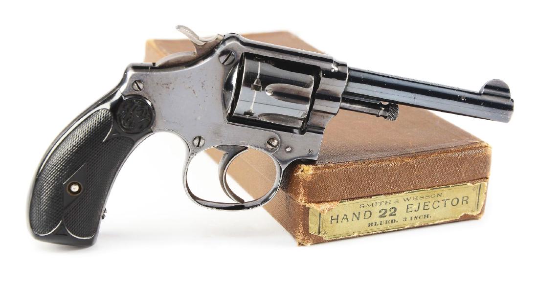 Smith & Wesson Model 1917 45 Auto Rim RevolverFeb 28, 2026Smith & Wesson US Army Model 1917 .45 cal.Mar 28, 2026**Smith & Wesson M&P Model of 1905 4th Change Revolver* SMITH & WESSON K-22 REVOLVER 20th Century Length of barrel 5.5". Total length 10".Mar 05, 2026SMITH & WESSON .32 HAND EJECTOR REVOLVER15 hrs LeftSMITH & WESSON .32.20 HAND EJECTOR MODEL 190515 hrs LeftSMITH & WESSON U.S. MARKED FIRST MODEL SCHOFIELDFeb 28, 2026(C) SMITH & WESSON MODEL 34-1 DOUBLE ACTION REVOLVER WITH BOXMar 03, 2026Antique Spanish copy of Smith & Wesson DA Frontier Revolver.Mar 14, 2026SMITH & WESSON 4TH MODEL 44 HE DA REVOLVER.7 days Left* SMITH & WESSON MODEL 60 REVOLVER 20th Century Length of barrel 2". Total length 6".Mar 05, 2026(C) SMITH & WESSON MODEL 36 DOUBLE ACTION REVOLVER WITH BOX.Mar 03, 2026Smith & Wesson Model 36 Double Action Revolver**Smith & Wesson Model .32 Hand Ejector "Pre-Model .30" Snubnose Revolver* SMITH & WESSON MODEL 19-3 REVOLVER 20th Century Length of barrel 2.5". Total length 7".Mar 05, 2026(C) PRE-WAR SMITH & WESSON 1ST MODEL K22 OUTDOORSMAN DOUBLE ACTION REVOLVER.Mar 03, 2026