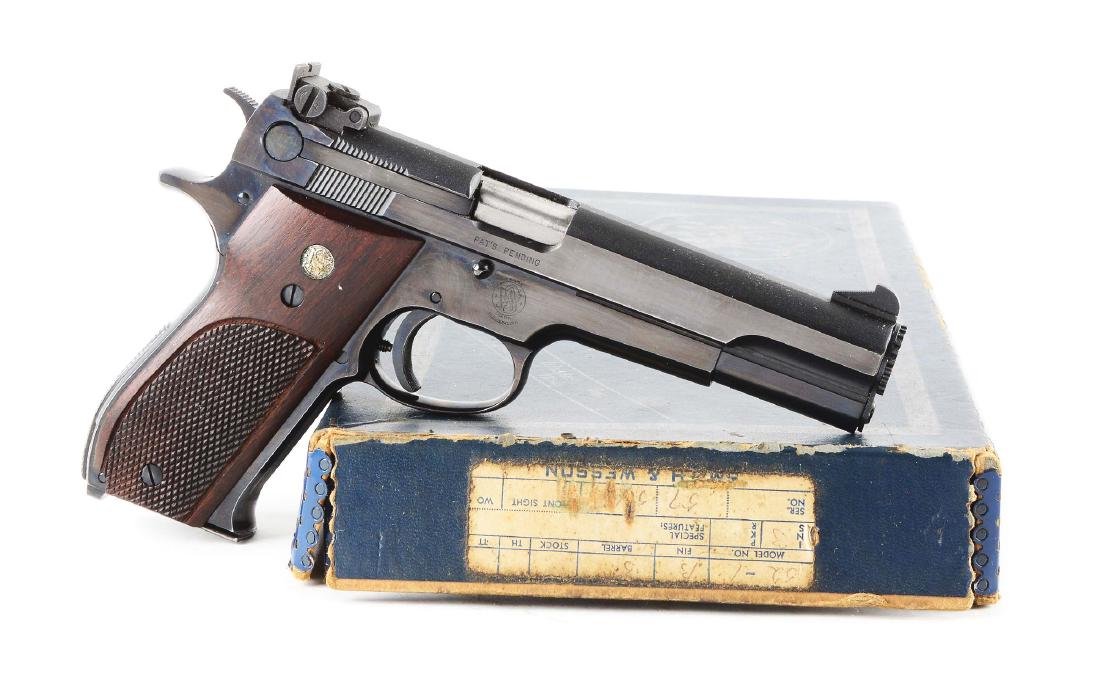 (C) SMITH & WESSON 52-1 .38 SPECIAL SEMI-AUTOMATIC PISTOL WITH BOXMar 03, 2026Smith & Wesson .32 S&W Safety Hammerless Lemon Squeezer Double Action Revolver in Factory Box(C) SMITH & WESSON MODEL 36 DOUBLE ACTION REVOLVER WITH BOX.Mar 03, 2026SMITH & WESSON MODEL 41 .22 LR TARGET PISTOL3 days Left(C) SMITH & WESSON MODEL 1913 SEMI-AUTOMATIC PISTOL.Mar 03, 2026SMITH & WESSON MODEL 28-2 .357 MAGNUM REVOLVER3 days Left(C) COLT MODEL 1903 POCKET HAMMERLESS .32 ACP SEMI-AUTOMATIC PISTOL.Mar 03, 2026Smith & Wesson Model 459 Semi Automatic Pistol(C) PRE-WAR SMITH & WESSON 1ST MODEL K22 OUTDOORSMAN DOUBLE ACTION REVOLVER.Mar 03, 2026Smith and Wesson Model 22S-1 Semi-Automatic Pistol, .22 LR, Three Magazines and Case, Circa 2000sFeb 22, 2026SMITH & WESSON MODEL 15-2 REVOLVERFeb 21, 2026(C) SMITH & WESSON CHIEFS SPECIAL MODEL 36 DOUBLE ACTION REVOLVER WITH BOXMar 03, 2026(C) SMITH & WESSON MODEL 34-1 DOUBLE ACTION REVOLVER WITH BOXMar 03, 2026SMITH & WESSON MODEL 1913 SEMI AUTO PISTOL.Feb 27, 2026SMITH & WESSON MODEL 1913 SEMI AUTO PISTOL.Feb 27, 2026(M) SMITH & WESSON MODEL 58 .41 MAGNUM DOUBLE ACTION REVOLVER.Mar 03, 2026