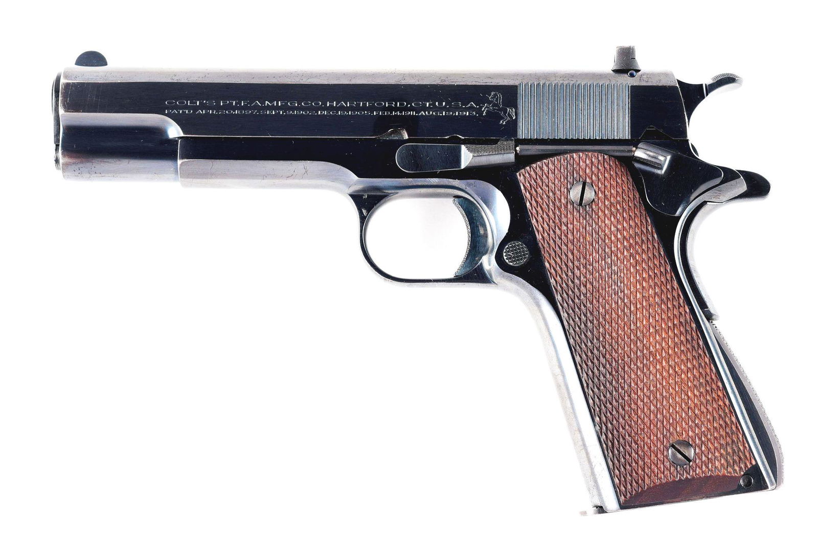 1941 WWII German Stamped WaA140 FN Browning Hi Power 9mm Semi-Auto Pistol1941 Colt Upgraded 1911 Government Model .45 ACP NM Barrel Semi-Auto Pistol1917 Colt Black Army 1911 Semi-Auto Pistol .45 ACP Five Digit Serial NumberWWI COLT MODEL 1911 JMG BRUSHED BLUE .45 ACPFeb 14, 20261916 Colt WWI Era Model 1903 Pocket Hammerless .32 ACP Semi-Auto PistolRMT Ranger / Colt ACE 1911 .22 LR Semi-Automatic Pistol1920 Colt Model 1903 Pocket Hammerless .32 ACP Semi-Auto Pistol In NickelColt MK IV Series 80 Officers Model .45 ACP PistolFeb 22, 2026COLT CUSTOM SUPER 38 WITH 22 LR CONVERSION UNITFeb 27, 2026Colt Model of 1911 Pistol in .45ACPFeb 13, 2026GERMAN OCCUPATION FABRIQUE NATIONALE HIGH POWERFeb 26, 2026COLT 1911A1 ETO COMMEMORATIVE PISTOL.Feb 27, 2026Colt M1903 Pocket Hammerless pistol in .32 RimlessFeb 13, 2026GERMAN OCCUPATION RADOM VIS.35 SEMI-AUTOMATICFeb 26, 2026Colt M 1908 Pocket Hammerless pistol in .380Feb 13, 2026GERMAN OCCUPATION RADOM VIS.35 SEMI-AUTOMATICFeb 26, 2026