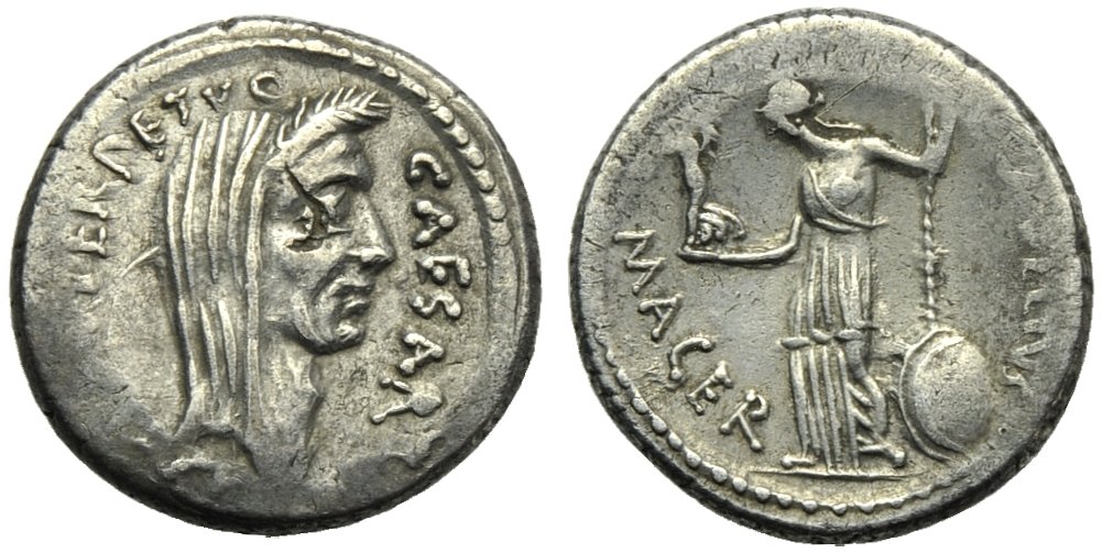 C. Julius Caesar and P. Sepullius Macer, Denarius,