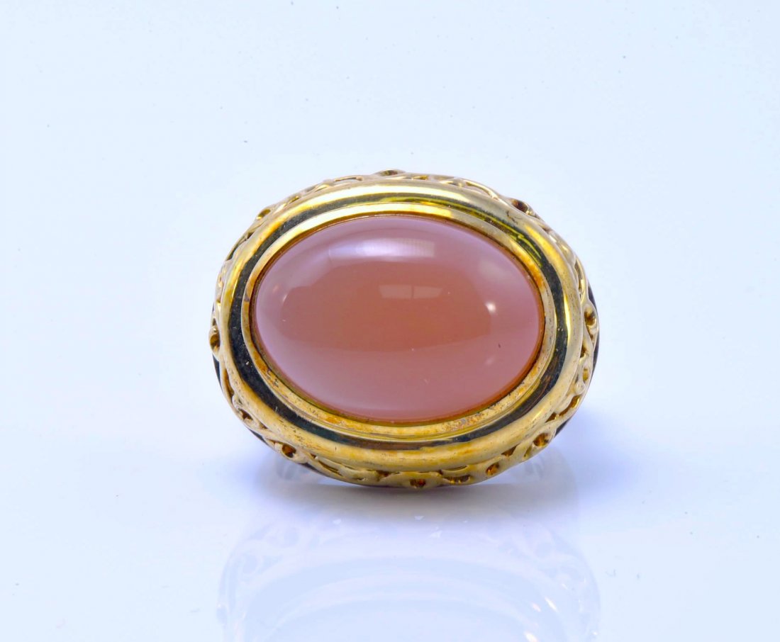 14K Gold 5.50ct Coral 1.06ct Diamond Ring