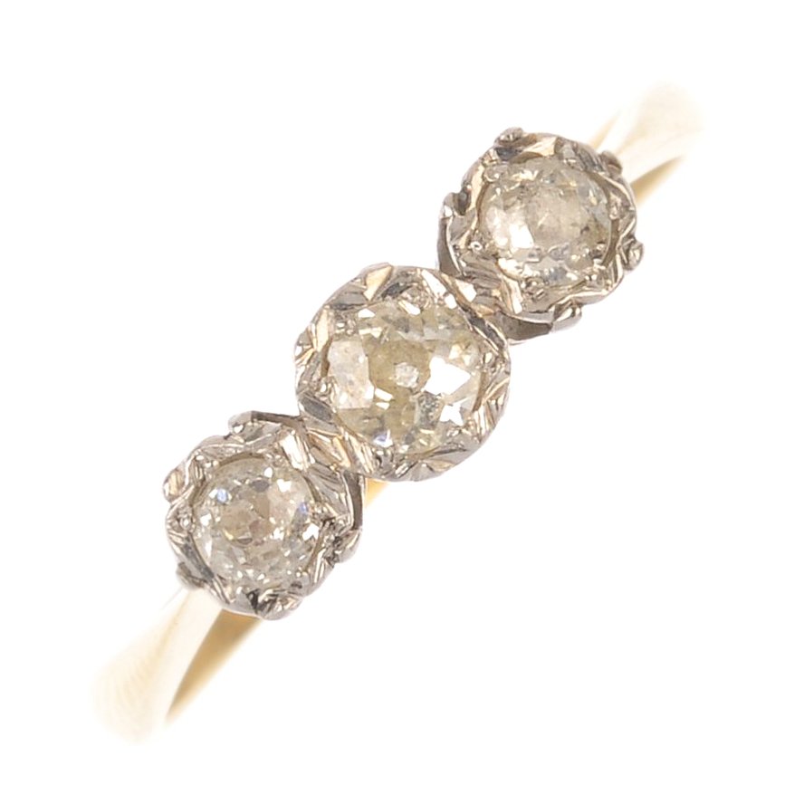 (C02803) A diamond three-stone ring.