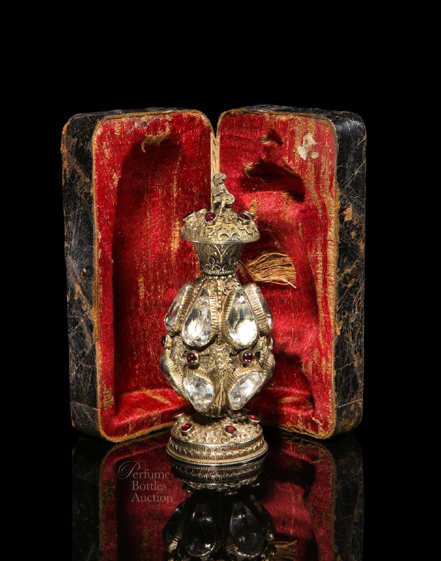 c1830 Perfume Bottle, Rock Crystal, Garnets