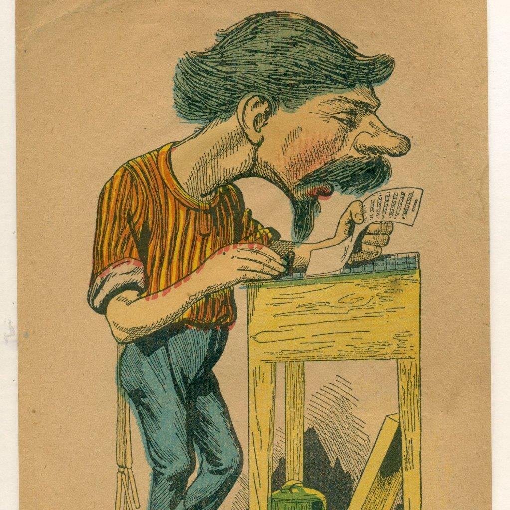 c.1890 Printer Typesetter Lithograph Caricature