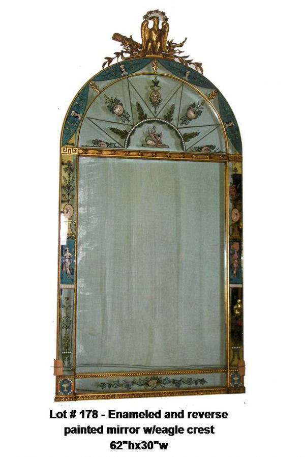 C1900 Enameled and reverse painted mirror