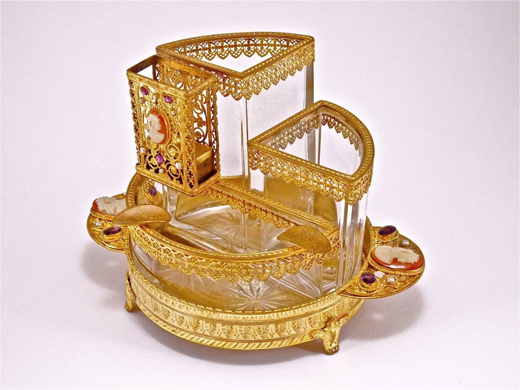 (3) ORMOLU-MOUNTED PEKING GLASS VANITY BOXES & ENAMELED CASKETFeb 22, 2026(3pc) Fostoria & Apollo "American"Glass And Gilt Brass Vanity Set5 days Left19th C. French Baccarat Bronze & Crystal Jewelry BoxFeb 21, 202619th C. Austrian Viennese Enamel Vanity Table with3 days Left19th C. French Gilt Bronze & Crystal Basket with Underplate1 day LeftLate 19Th Century French Gilt Bronze DecanterFeb 26, 202619th Century French Napoleon III Gilt Bronze Glass Cave a Liqueur with Crystal DecantersFeb 27, 202619TH C. LOUIS XVI STYLE GILTWOOD VITRINEFeb 21, 202619th C. French Bronze & Baccarat Crystal Figural Centerpiece1 day Left1920s Empire Style Ormolu Cut Crystal Compote Made in AustriaFeb 23, 2026A FRENCH ORMOLU-MOUNTED GLASS PERFUME CASKET, LATE 19TH CENTURY3 days Left19Th C French Gilt Bronze & Italian Crystal Liquor SetFeb 26, 202619th Century French Champleve Enamel Over gilt Bronze & Baccarat Crystal Cruet Set3 days Left19th Century French Bronze Overlayed Vanity Powder/Jewelry Glass Jar/Box3 days Left19th C. Saint Louis Crystal & Bronze Mounted Cady Dish1 day LeftAntique French Gilt Bronze, Crystal & Enamel BoxFeb 26, 2026