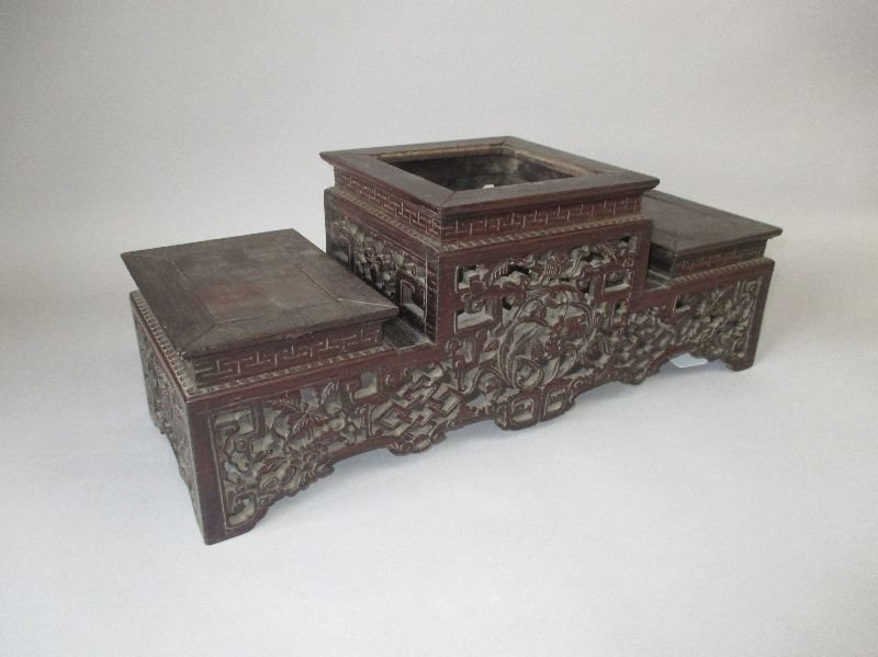 4 19th century Chinese carved wood stands. Large round 7in diameter. Elaborate stand 7 W x 6.25in.Tremont Auctions4.6(313)$150(2 bids)6 days Left