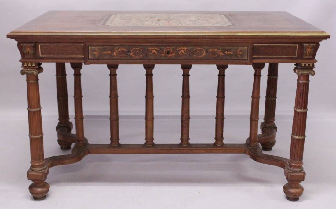 Louis XV Style Marquetry Inlaid Brass Bound DeskA Victorian gilt bronze mounted walnut and marquetry bureau plat, manner of Edward Holmes BaldockFeb 25, 2026FRENCH NAPOLEON III PERIOD ORMOLU-MOUNTED MARQUETRY SALON TABLE7 days LeftVICTORIAN WALNUT LIBRARY TABLE7 days LeftA Dutch marquetry center tableMar 03, 2026Louis XV Style Marquetry Kingwood Table, 19th C.Mar 19, 2026FRENCH RENAISSANCE REVIVAL CARVED WALNUT LIBRARY TABLE7 days LeftA FRENCH ORMOLU-MOUNTED TULIPWOOD, FRUITWOOD, BURR BIRCH AND MARQUETRY TABLE A ECRIRE 19TH CENTURY2 days LeftA walnut and marquetry console table, 19th century, Italian,Feb 24, 2026VICTORIAN CONSOLE SERVING TABLE7 days LeftY A REGENCY ROSEWOOD AND BRASS MOUNTED LIBRARY TABLE, ATTRIBUTED TO GILLOWS, CIRCA 18152 days LeftAntique 1900 French Henry II Renaissance Dining Table Burnt Umber FinishMar 01, 2026A FRENCH ORMOLU-MOUNTED TULIPWOOD, AMARANTH AND MARQUETRY TABLE A ECRIRE PARTS POSSIBLY 18TH CENTURY2 days LeftFrench Art Nouveau Marquetry Inlaid TableFeb 27, 2026FRENCH LOUIS XV STYLE MARQUETRY FLIP-TOP GAMES TABLE5 days LeftLouis XVI Style Ormolu and Mahogany Writing TableMar 05, 2026