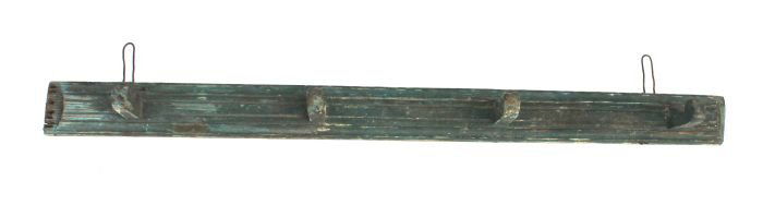 ca 1850 pine Cape Cod peg rack in orig blue paint