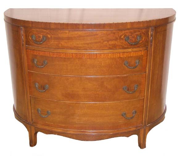 Ca. 1900 walnut demilune 4 drawer commode