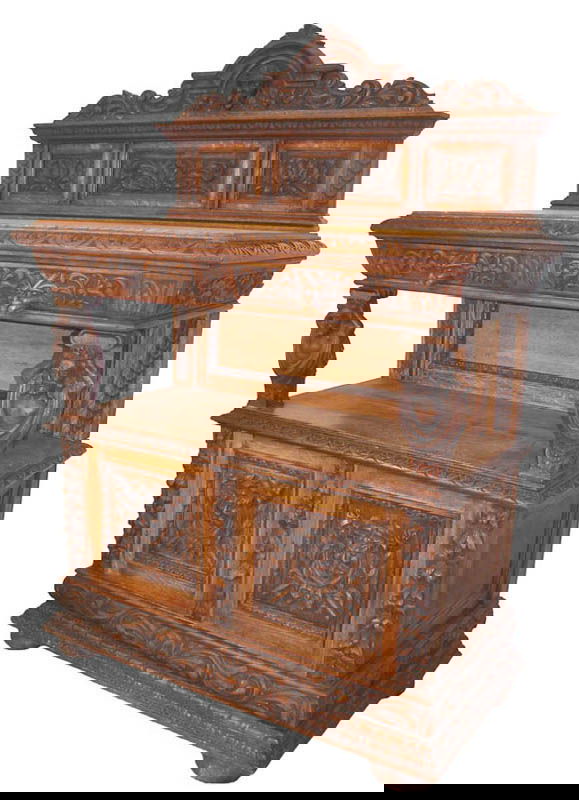 CARVED AMERICAN OAK DESKMar 07, 2026Antique Flame Mahogany & Walnut Marble Top Sideboard C1860Mar 07, 2026EUROPEAN OAK SIDEBOARDMar 07, 2026ANTIQUE HIGHLY CARVED OAK DESKMar 07, 2026English Oak Sideboard with BacksplashMar 07, 2026Jacobean style petite court cupboard in oak with barley twist columnsMar 07, 2026HIDE-A-WAY OAK BENCHMar 06, 2026American Quarter Sawn Oak Server / SideboardMar 07, 2026Cir 1900s American Carved Oak Server w/ Foliate MotifsMar 07, 2026HEAVILY CARVED BAROQUE 1 DRAWER CABINET, FULLY CARVED FIGURES, FRENCH OR NORTHERN ITALIAN 37" X 37"Mar 15, 2026Antique Carved Sideboard3 days LeftFrench Henry II Carved Mahogany Secretaire a Abattant, late 19th c., H.- 55 1/2 in., W.- 38 in., D.-24 hrs Left19th Century Salesman Sample Oak Three Drawer Dresser 11" TallMar 28, 2026DIMINUTIVE MAHOGANY PHILA. SIDEBOARD POSSIBLY BY JOSEPH BARRY W/ CRISPLY CARVED PAW FEET 46 1/4" XMar 15, 2026Francis I Gothic Iron-Mounted Carved Oak Dressoir88 Lots AwayANTIQUE SPANISH STYLE OAK SIDEBOARDMar 07, 2026
