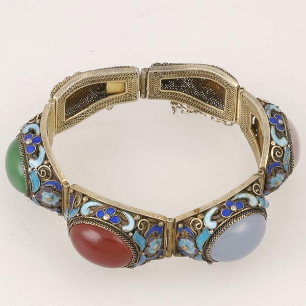 Cabochon, Enameled, Silver Bracelet