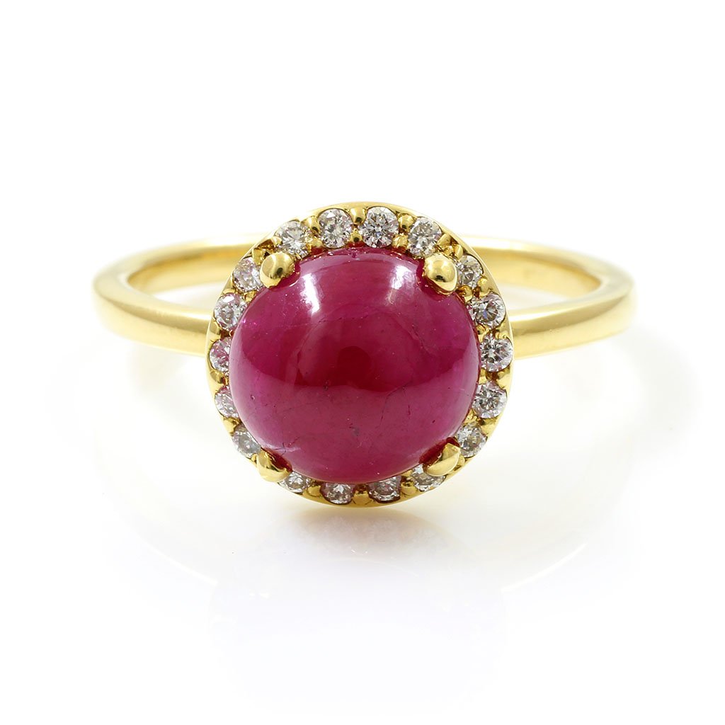 Cabochon Ruby & Diamond in 18k Gold Ring