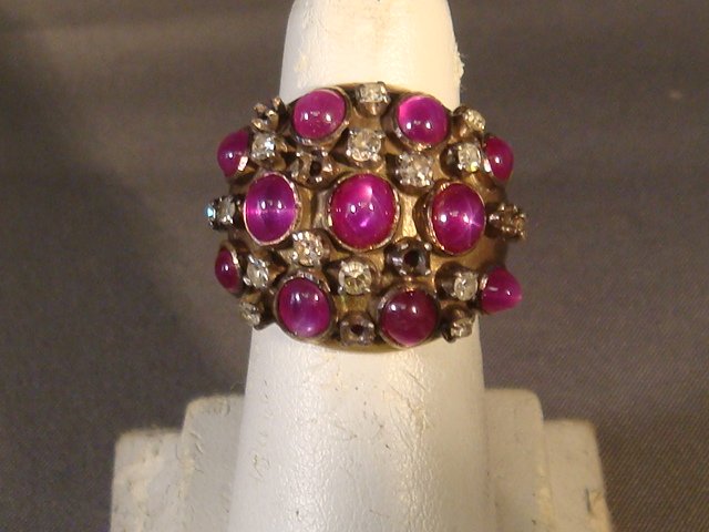 Cabochon Ruby and Diamond Ring in 14K Setting