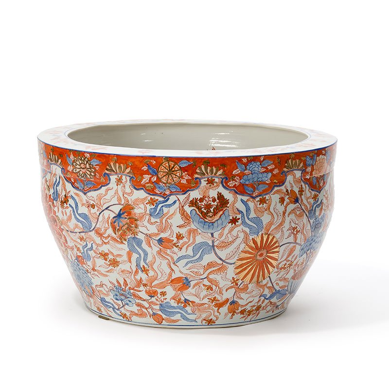 Delphin MASSIER (1836-1907) An exceptional Cache Pot on a stand, made of faience with pink and blackDelphin MASSIER (1836-1907) An exceptional Cache Pot on a stand, made of faience with pink and black glaze. Decorated with faces and patterns in Louis XV style. Not marked. Model number 836/I & 836/L.