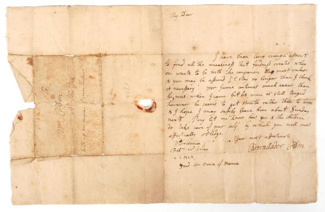 CADWALLADER COLDEN, 1722 Letter