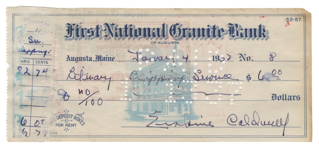Oswald Marsh Hand Signed 'Roque Lyons Esq.(Algiers, Tunisia)' Bankers Cheque Dated 8th March 1923203416 Willie Mosconi Billiards Champ Signed/ Autographed 1966 Bank Check PSA/ DNAMar 17, 2026Oswald Marsh Hand Signed 'Roque Lyons Esq.(Algiers, Tunisia)' Bankers Cheque Dated 2nd March 1923United States 1882 National Bank of Chambersburg Check RN-G1 Orange Revenue ImprintMar 29, 2026VF15 1902 $10 Wyoming National Bank Wilkes Barre PA CH#732 PMG6 days Left2.5x6 May 1983 Robert Redford Signed Personal Check Beckett Authenticated1 day LeftUnited States 1872 First National Bank of Huntingdon Check RN-C2 Brown Revenue ImprintMar 29, 2026North Carolina Obsolete Note Bank of Yanceyville PMG VF20 - 1857 $10 YanceyvilleMar 18, 2026Deuce 1865 $2 Orig. FR#387a National Hope Bank Warren RI CH#1008 PMG VF25 LazyMar 18, 2026AU55 1914 $50 Federal Reserve Note BostonFr# 1024 PMGMar 15, 2026XF40 1813 $57 New York Payment Certificate Treasurer of NY PMGMar 20, 2026Antique H Hoover Signed Check1 day Left(488) 1902 $50 FIRST NATIONAL BANKNOTE CURRENCY NORTH BEND NEBRASKA PMG 25 VFMar 12, 2026VF35 1811 $66.44 New York Payment Certificate Treasurer of NY PMG5 days LeftXF40 1811 $91.93 New York Payment Certificate Treasurer of NY PMG2 days LeftOswald Marsh Hand Signed 'Czecho-Slovak' (Government In Exile) Bankers Cheque Dated 25th April 1945