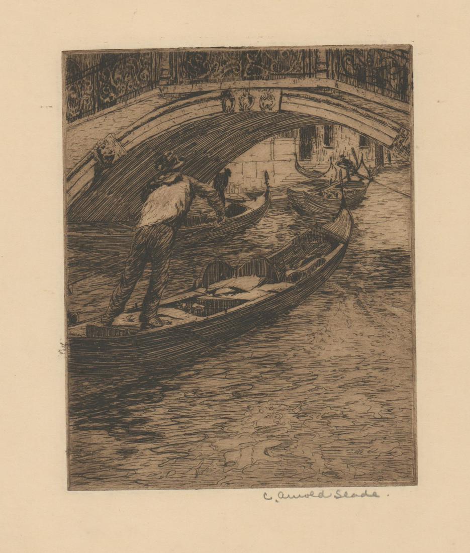 Caleb Arnold Slade Etching [Venice, Gondolas]