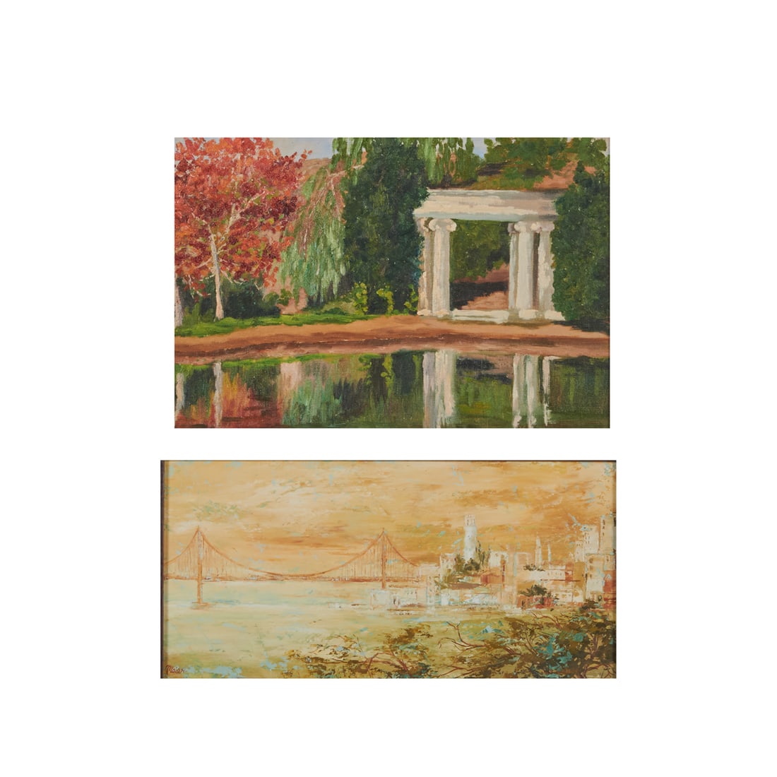 California School, two oils on board