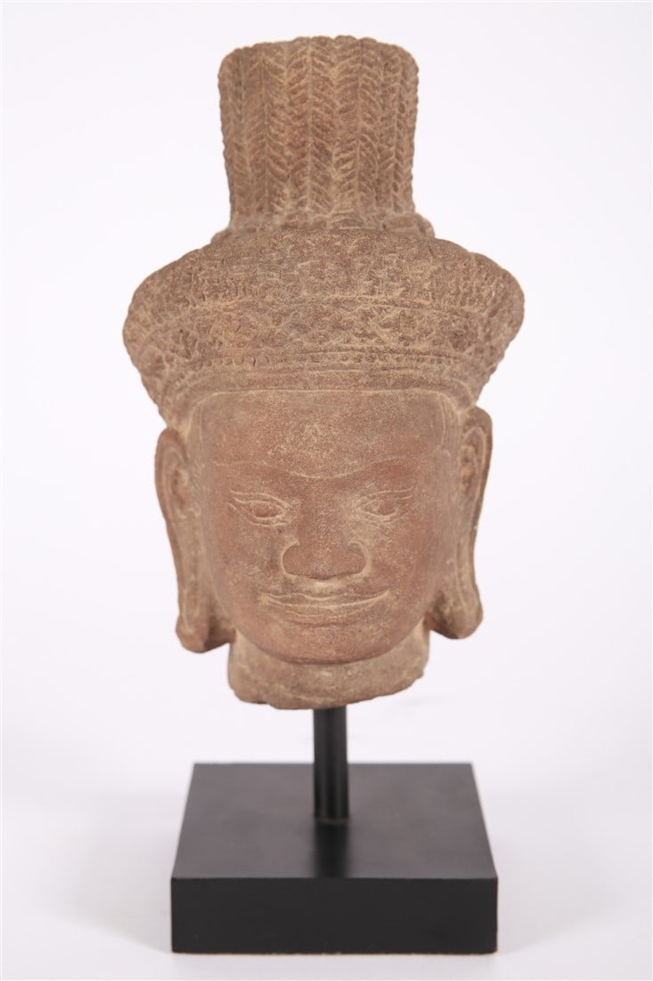 Cambodian Sandstone Head on Base