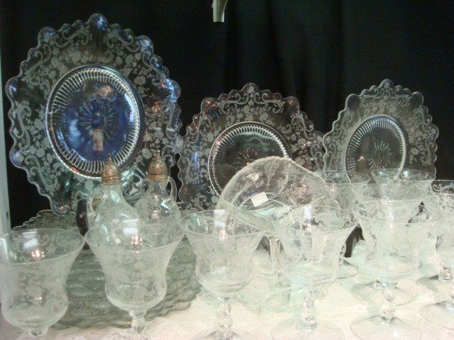CAMBRIDGE Chantilly Etched Stemware and Plates: