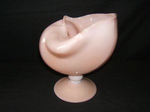 SoldCambridge Crown Tuscan Nautilus Shell VasesPair of Cambridge Glass in their Crown Tuscan pink color, this is from their Sea Shell line, in the form of a nautilus shell with an aggregation of smaller shells forming the base. One still has paperSee Sold Price
