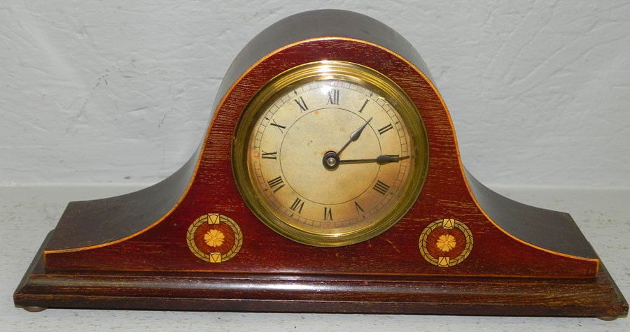 Camel back inlaid shelf clock.
