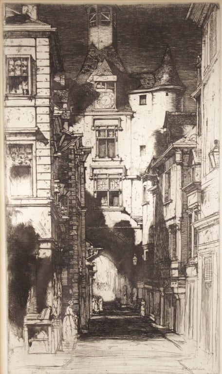 Edward Slocombe La Rue Du Vicomte, Rouen etching signed