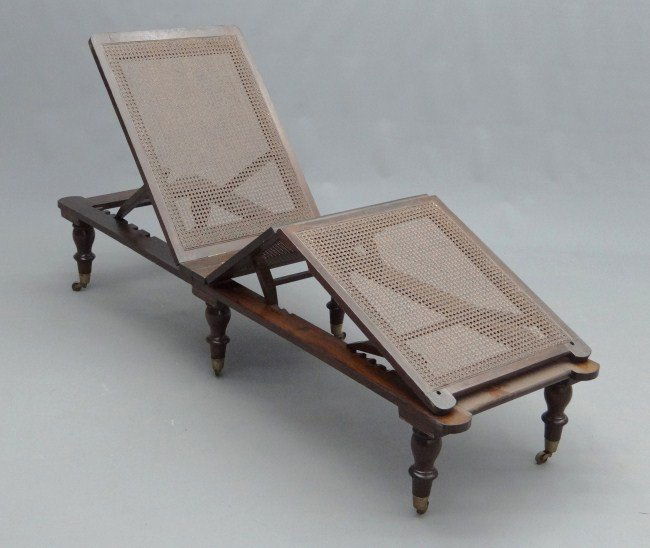 SoldUnusual Early Victorian Brass-Mounted Fruitwood and Caned Campaign ChairUnusual Early Victorian Brass-Mounted Fruitwood and Caned Campaign Chair ,/p> Label on the reverse: 'J. Alderman Inventor, Patentee & Manufacturer,16, Soho Square, London'. 36 x 19 x 24 in. Seat heighSee Sold Price