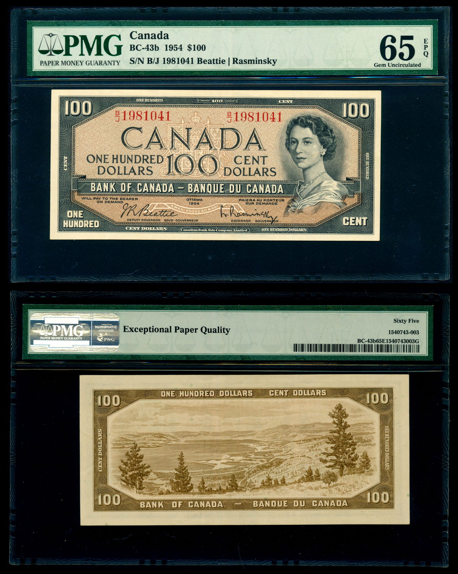 Canada $100 1954 Pmg