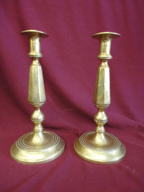 Candlesticks, Pair, Brass, Holes Drilled for Crys