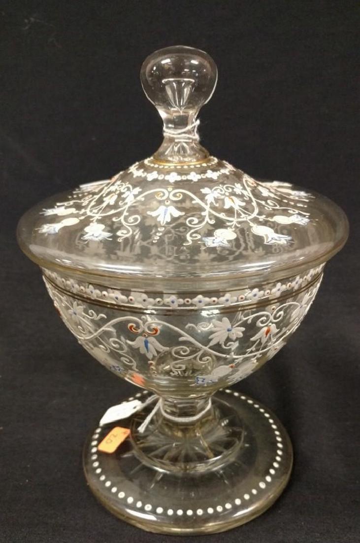 Candy Dish - ground bottom with Lid Enamel on Clear